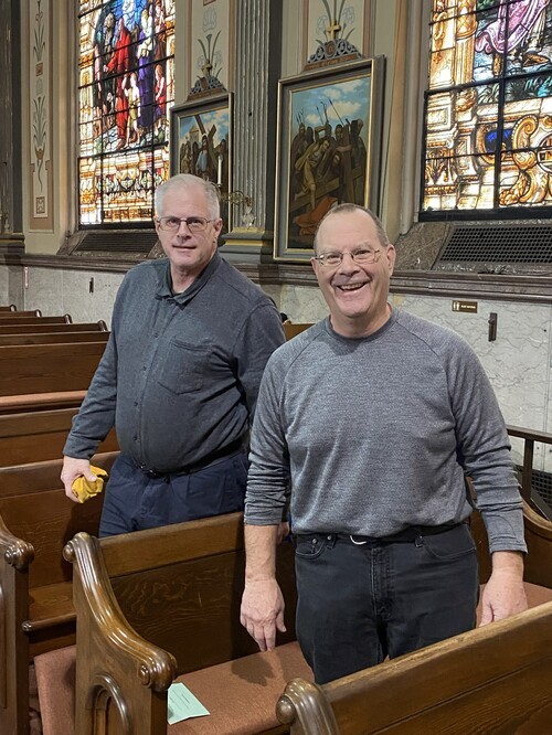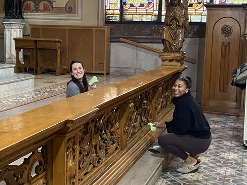 On Monday, Dec. 15, a group of volunteer angels swooped down on Mother of God to clean the church in preparation for Christmas. The morning began with a blessing from Fr. Comer, and then everyone got to work vacuuming, polishing and scrubbing until the church shone. Thanks to all who gave of their time so generously. We appreciate you!