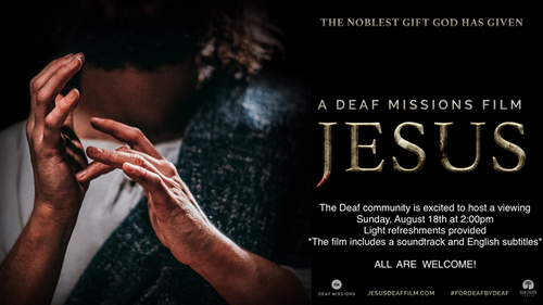 This is the first time the story of Jesus has been presented as a feature film entirely in American Sign Language. Please join us for this historic film. There will be light refreshments.