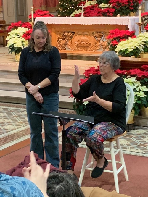 Diane Donathan, an ASL interpreter who celebrated 40 years of signing the Mass for our Deaf Community at Mother of God on Thanksgiving Day, expressed her gratitude for all who attended a recent luncheon in her honor.