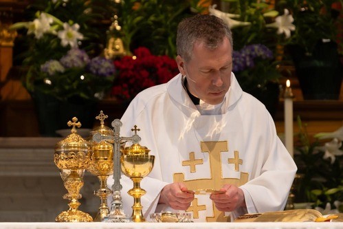God’s blessings continued in the form of Fr. Jim Schaeper who graciously stepped in to celebrate the rest of the Triduum and Easter liturgies. And most importantly, that grace culminated in Fr. Mike’s release from the hospital on Monday evening with no lasting effects from the minor stroke he suffered. Our joy in the Resurrection is made even more complete knowing our pastor is back home and on a healing path.