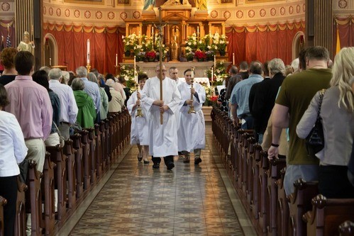 Not to worry. The Holy Spirit was already on it—first by surrounding Fr. Mike with clinically astute parishioners who recognized what was happening and got him to the Emergency Room as quickly as possible, and second, by guiding parish staff in leading a liturgy that, while not a Mass, was still prayerful and honored the intent of the Triduum.