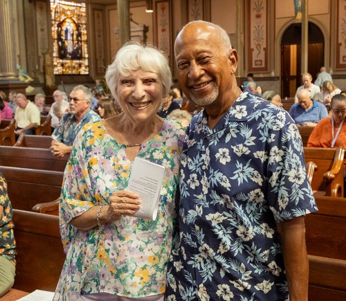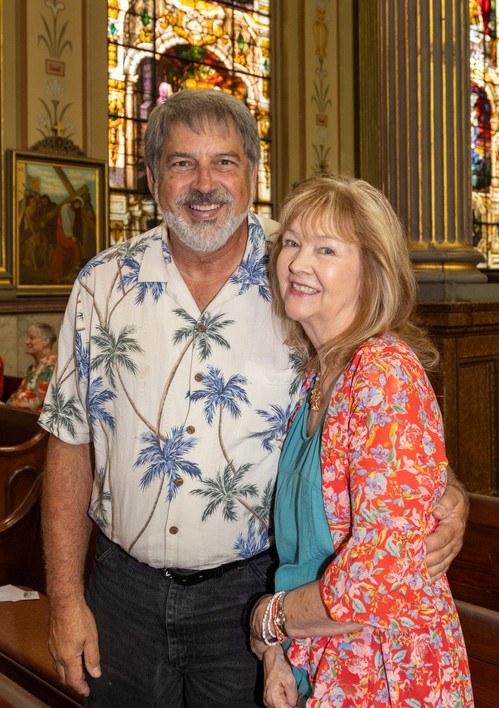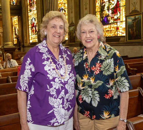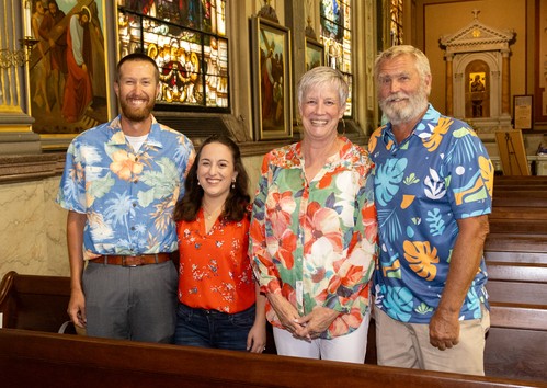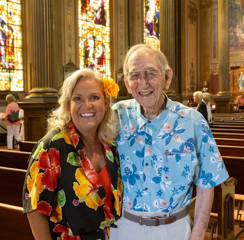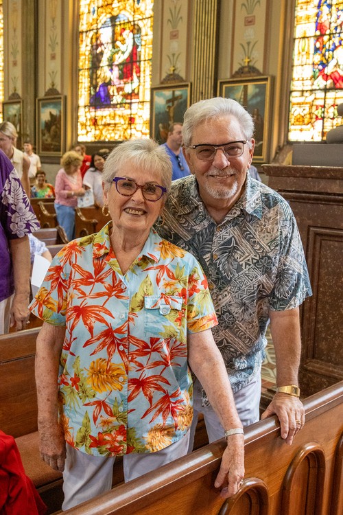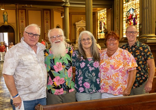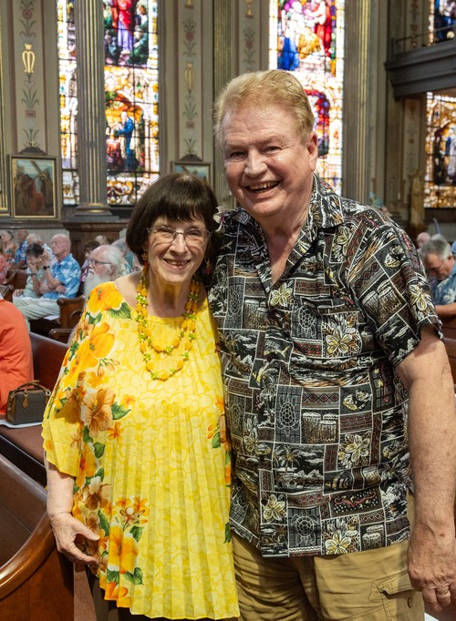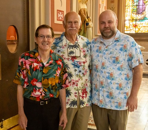 Parishioners turned out in their most colorful attire last Sunday, July 14, for an MoG tradition--Hawaiian Shirt Day. The only thing missing were the pineapple pina coladas. But there were plenty of smiles, as you can see here.