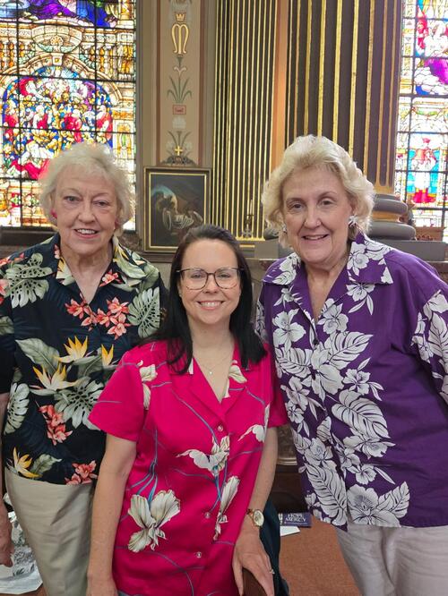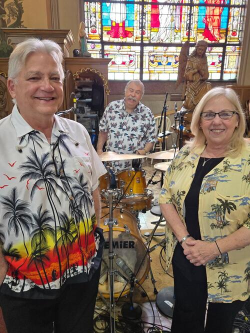 Another Hawaiian Shirt Sunday is in the books. The colorful congregation at both the 9:30 and 11:30 am Masses on July 27 was awash with bright prints, featuring flowers, palm trees, tropical birds and more, proving once again that Mother of God folks are sharp dressers and great fun.