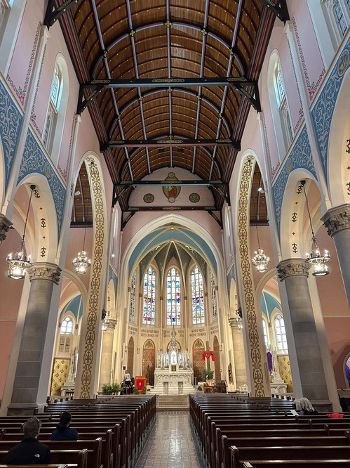 Our longest stretch followed, leading us down to St. John the Evangelist on West Pike Street. The climb to the balcony—supposedly just 37 steps—felt longer, but the breathtaking view and magnificent organ made the effort worthwhile.
