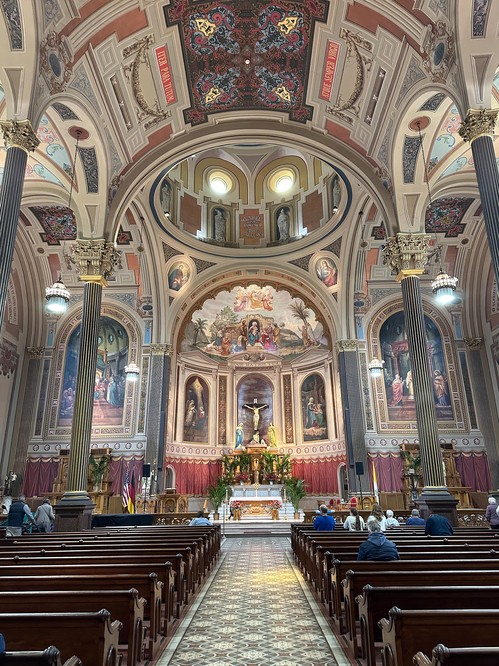 From there, we continued to St. Benedict on 17th Street, where we were warmly greeted by a cheerful group that welcomed us to “the most beautiful church in Covington.” It made us smile, because every parishioner feels that way about their parish home. The hospitality and charm there were unforgettable.