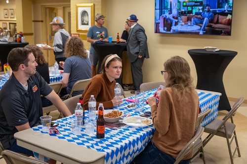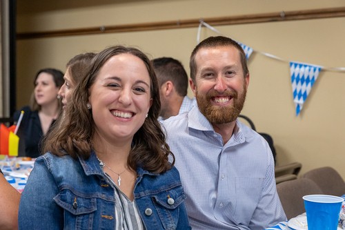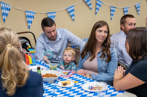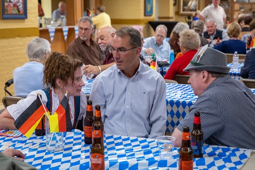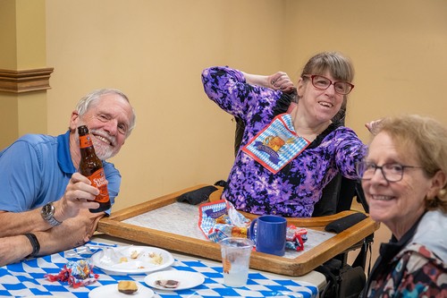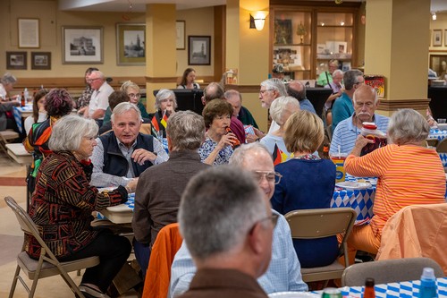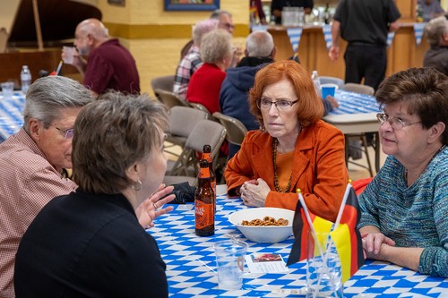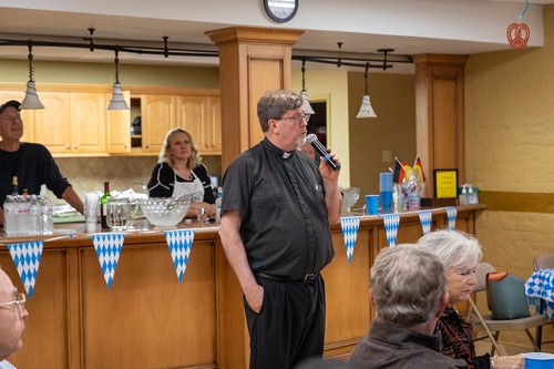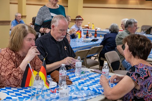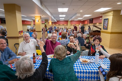 Mother of God parish returned to its roots on Sunday, Sept. 29, at the annual Oktoberfest celebration. Held immediately after the 11:30 am Mass in the undercroft, the gathering featured German beer, brats, sauerkraut, German potato salad, fruit, cream puffs and eclairs, plus the Ein Stein German band (featuring the Contemporary Ensemble’s Kenny and Robin Bierschenk).
