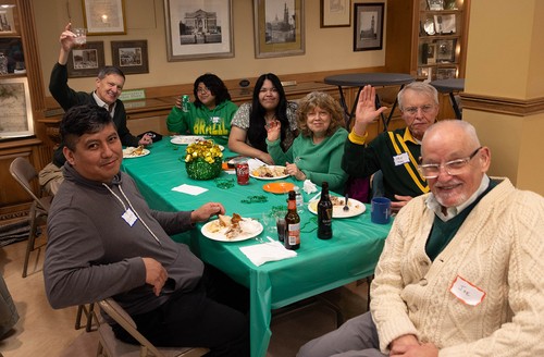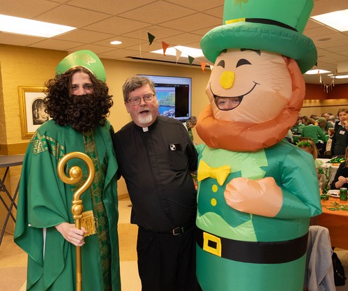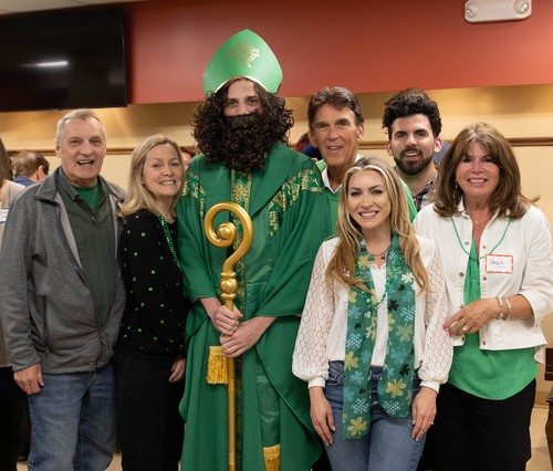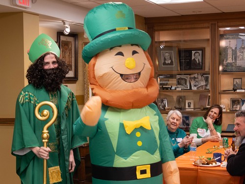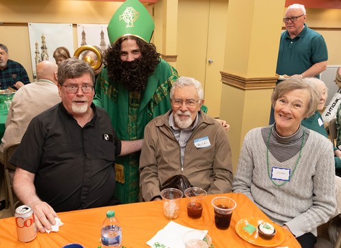 Sunday, March 17, was a great day for the wearin' of the green at Mother of God, even for those of us with German roots! The party featured a special visit from St. Patrick himself and Lucky the Leprechaun (aka Freddie Caldwell and Mary Catherine Kelly). Thanks to all who worked hard to make this gathering a wonderful celebration, filled with delicious food, drink, Irish trivia and great craic (that's Irish for fun)!