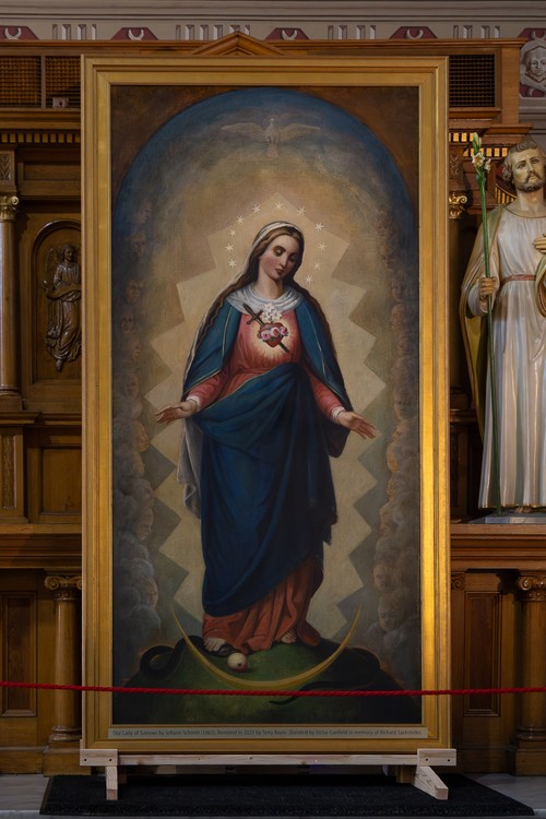 On Sunday, May 18, the parish added one more gem to its collection when it dedicated one of Schmitt's earliest paintings, "Our Lady of Sorrows," during a special Vespers service.